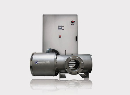 Aquafine sistemas MPR para la desinfección y la reducción de cloraminas utilizan de media presión (MP) y la tecnología de las lámparas son muy adecuadas para caudales superiores a 25gpm teniendo en cuenta las eficiencias ganadas en la dosis reunión aplicaciones intensivas siendo económicamente competitiva. La serie MPR se compone fo acero inoxidable 316L, acabado mate cámara de tratamiento y una UL Tipo 12 pintado gabinete de acero al carbono de control, con un controlador basado en un microprocesador un limpiador automático opcional. La incorporación de ultravioleta de alta intensidad MP (UV) lámparas reduce el número de lámparas por 90 por ciento, lo que reduce los requisitos de espacio y tiempo de inactividad y disminuir los costes de instalación y mantenimiento. Con un tamaño reducido, el aumento de las tasas de flujo y el estado de la tecnología más avanzada MP, los sistemas de Aquafine de TPM son una alternativa innovadora, confiable y ambientalmente responsable. Sistemas MPR se NSF y cULus en la lista. EC pendiente.
